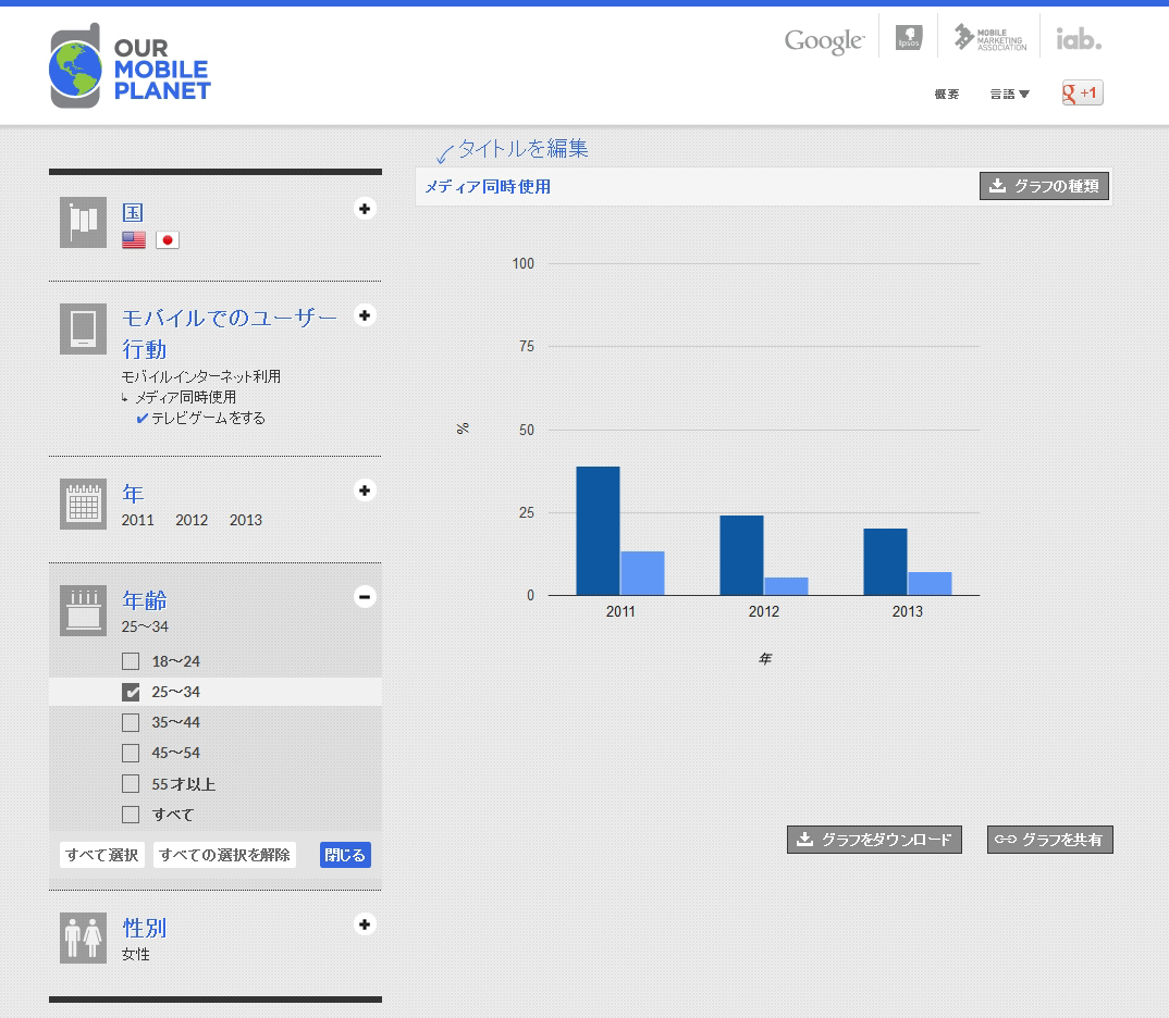 Google,スマホ利用に関する大規模調査「Our Mobile Planet」の2013年版データを公開。ユーザーがグラフをカスタマイズして閲覧可能