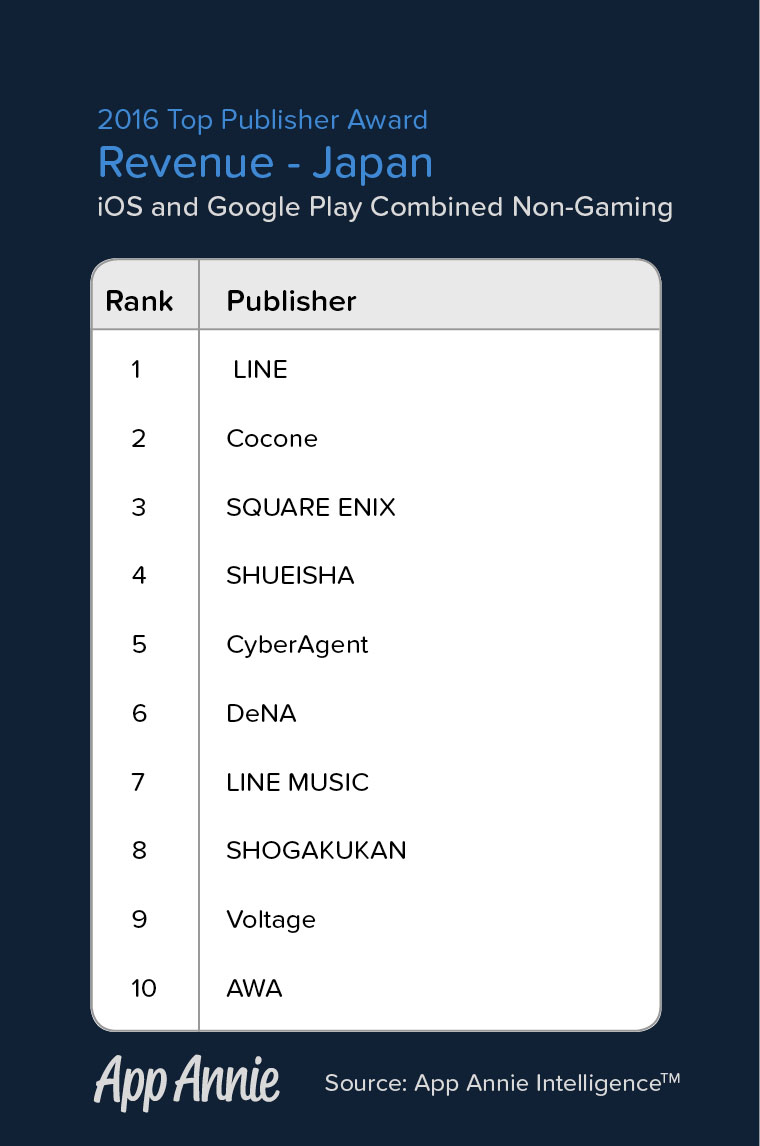 • 画像ギャラリー No.003 | App Annieのイベント「Top Publisher Awards 2016」をレポート。「モンスターストライク」のミクシィが日本企業トップの6位にランクイン