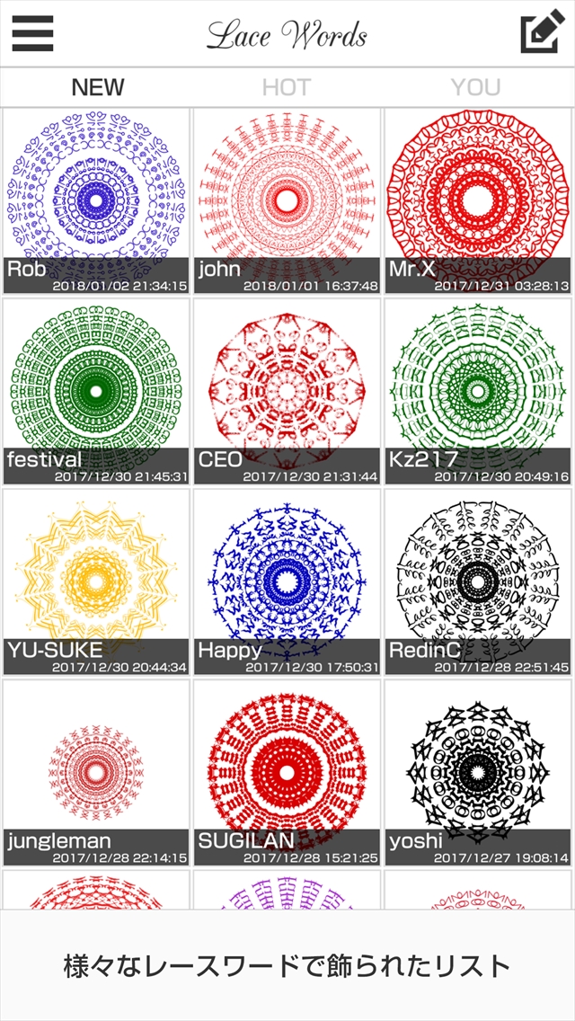 入力した言葉をレース柄にする「レースワード」が配信