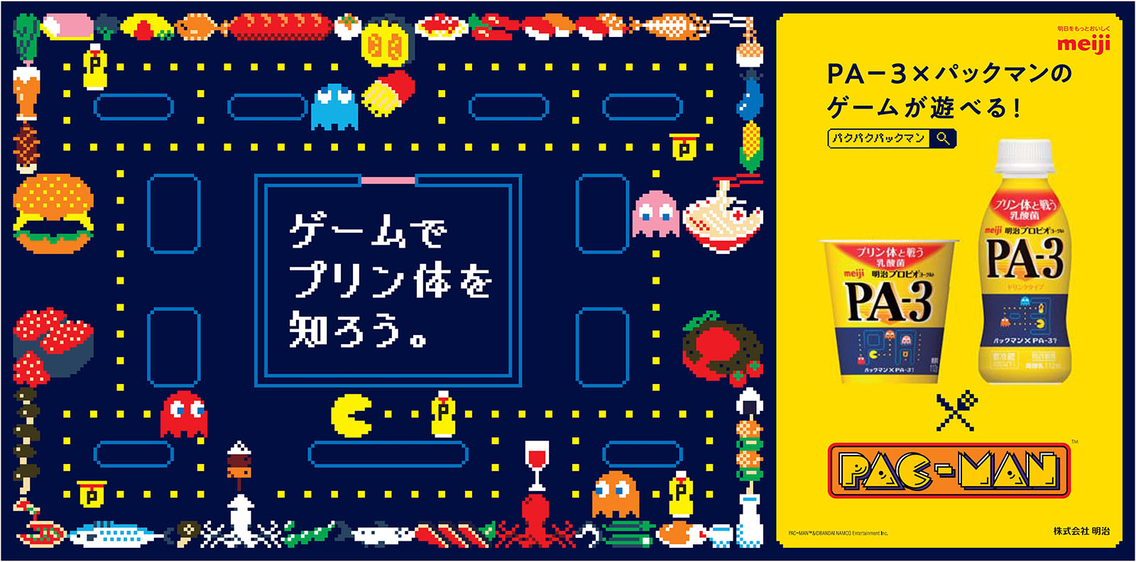 「明治プロビオヨーグルトPA-3」とゲーム「パックマン」がタイアップ。スマホやPCブラウザで楽しめる特別ゲームを5月22日に公開