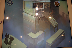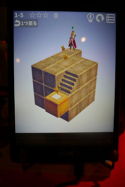 グラフィックスは絵本のようなテイストなため,これを折り曲げて遊ぶのは,ちょっとインタラクティブ絵本的な趣がある。もちろん本作はデジタルゲームなので,何度折り曲げても紙にクセがついたりしないのも嬉しい。海外のデベロッパStudio Flipの作品だが,出展されていたバージョンはメッセージが日本語化されていた。