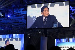 そのほか,2014年1月29日に掲載した記事でお伝えしたように,PlayStationの生みの親として知られる久夛良木 健氏が,「Lifetime Achievement Winner」(生涯功労賞)に選ばれているのもトピックだ。ちなみに,久夛良木氏の登場前,同氏の功績を紹介するというムービーが流れたのだが,これが「Kutaragi's Way」というノイズが入りまくりの妙なB級映画仕立てになっており,銃を手にした久夛良木氏(※外国人俳優が演じている)が,邪魔なライバルを次々に抹殺し,最後は某社(※書きづらい)のCEOに怒りの銃弾を浴びせるという内容だった。