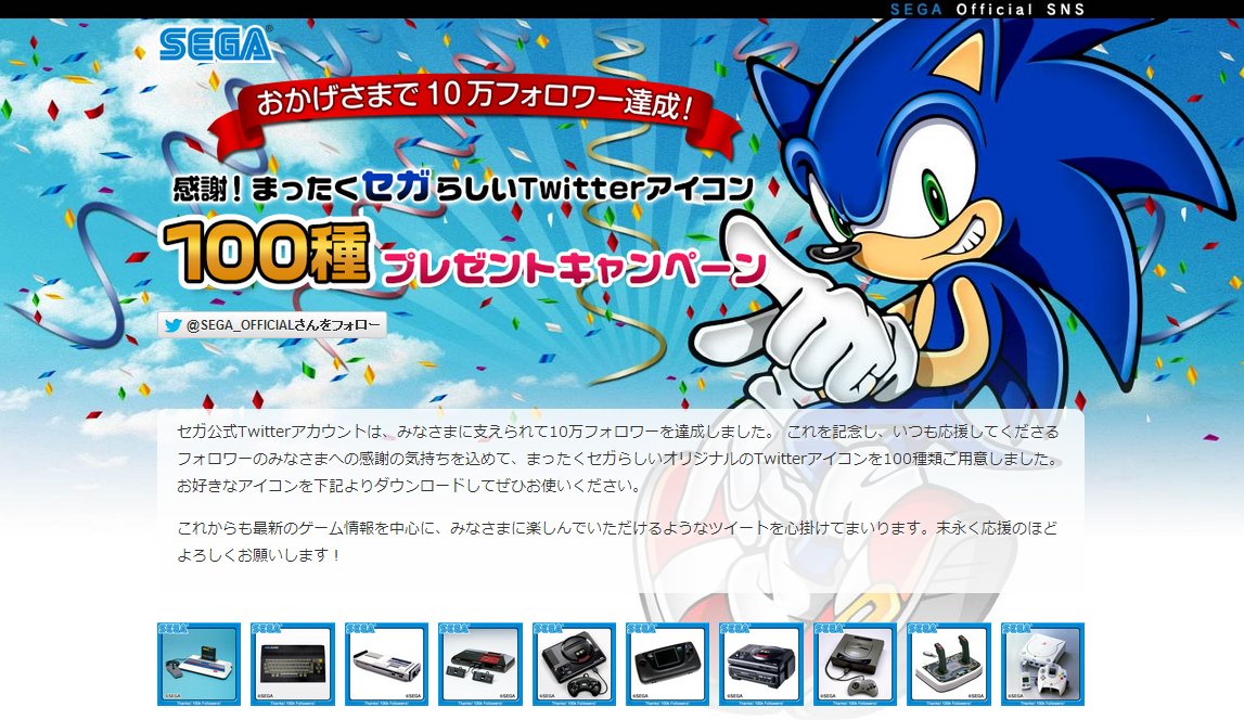 セガ公式Twitterアカウント,10万フォロワー達成記念でアイコンをプレゼント