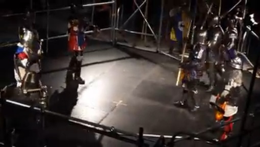 選手を見てみると,2m越えの巨躯を持つ,お笑い芸人で「ドラゴンクエストX」の第三期初心者大使でもある阿見靖士選手のインパクトが強いが,今回は女性騎士の加川聖香選手や,キャッスル・ティンタジェル城主であるJay Noyes選手も参戦し,ユニークな面々が揃っていた。