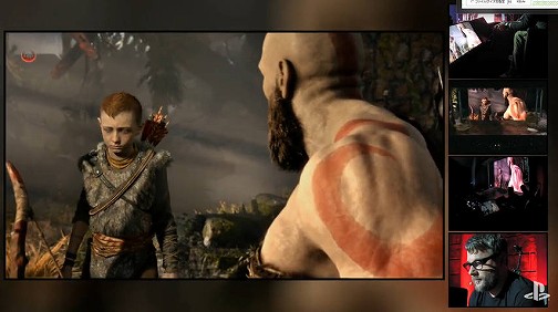 そして映像の上映に。ナイフを手にした少年に語りかける低い声。そしてその主は……「GOD OF WAR」のクレイトス。