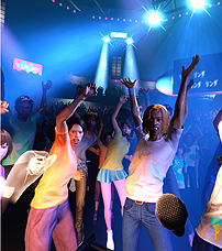一方のマックスボルテージは,全方位自由に動けるステージ空間を再現した箱型のブースの中で,VRゴーグルを装着して楽しむタイプのアクティビティとなっている。プレイヤーはバンドのボーカルとなり,大観衆を前にパフォーマンスを行うという趣向。こちらの体験料は930バナコイン(1000円),所要時間は約9分となっている。「曲に合わせて歌を歌ったり,掛け声や手を振る」とあるのである程度の勇気(?)が必要となりそうだが,こちらもプレイフィールの気になるアクティビティだ。