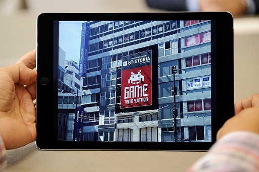 (写真を見せながら)こんな感じで……これ池袋の西口駅前のところです。で,一番上,タイトーステーションの上に描いてあるロゴのやつが,カフェです。