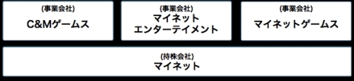 マイネットグループの主要会社としては、持株会社として「株式会社マイネット」、ゲームサービス事業を担う事業会社として、株式会社マイネットのゲームサービス事業を承継する「株式会社マイネットエンターテイメント」(11月1日設立予定)、本日「クルーズのゲーム事業買収に関するお知らせ」にて発表した「株式会社C&Mゲームス」(11月1日設立予定)、2016年5月に株式会社ポケラボを吸収分割した「株式会社マイネットゲームス」の4社となります。