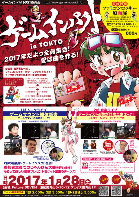 ゲーム音楽関係者によるトーク&ゲーム関連アーティストによるライブ「ゲームインパクト in 東京」が1月28日に開催。「ファミコンロッキー」原画展も