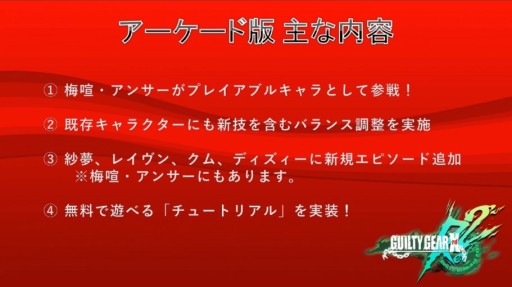 本作は,同社の対戦格闘ゲーム「GUILTY GEAR」シリーズの最新作。本日の発表に合わせて,今作からの追加キャラクターとなる梅喧とアンサーのイラストや,公式動画チャンネルにおいてプロモーションビデオが公開されている。
