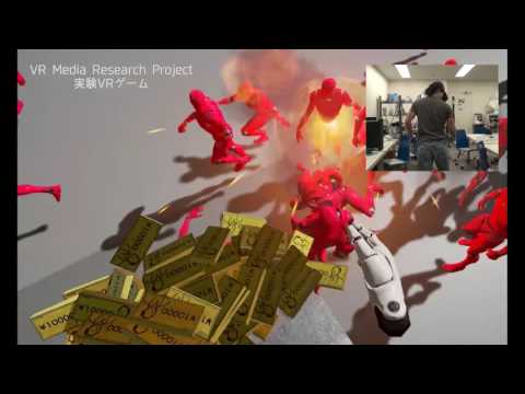 群がってくる人々にお金をばらまき,幸せにするVRゲーム。大阪電気通信大学の有志スタッフが参加するVR Media Research Projectの作品だ。