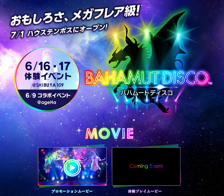 スクエニ×ハウステンボス共同開発のVRアトラクション「バハムートディスコ」が渋谷で体験できる。“宇宙最速”体験イベントが6月16日と17日に開催