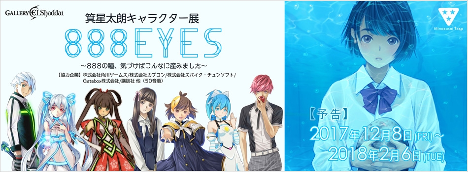 箕星太朗氏の初個展「888EYES」が2017年12月8日に開催決定。担当キャラクター444人分を展示し,描き下ろしグッズを販売