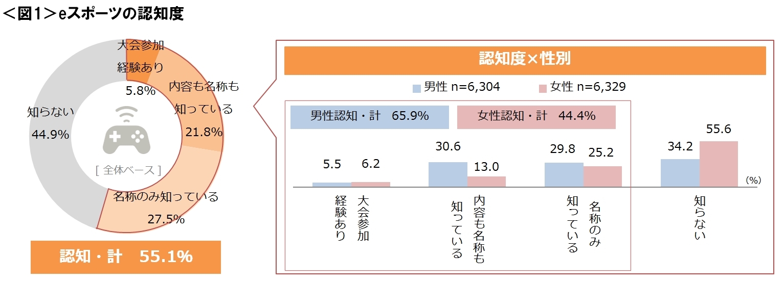 インターネットリサーチによる「eスポーツ」に関する調査結果が公開に。有効回答数1万2633のうち,55.1%がeスポーツを認知していると回答
