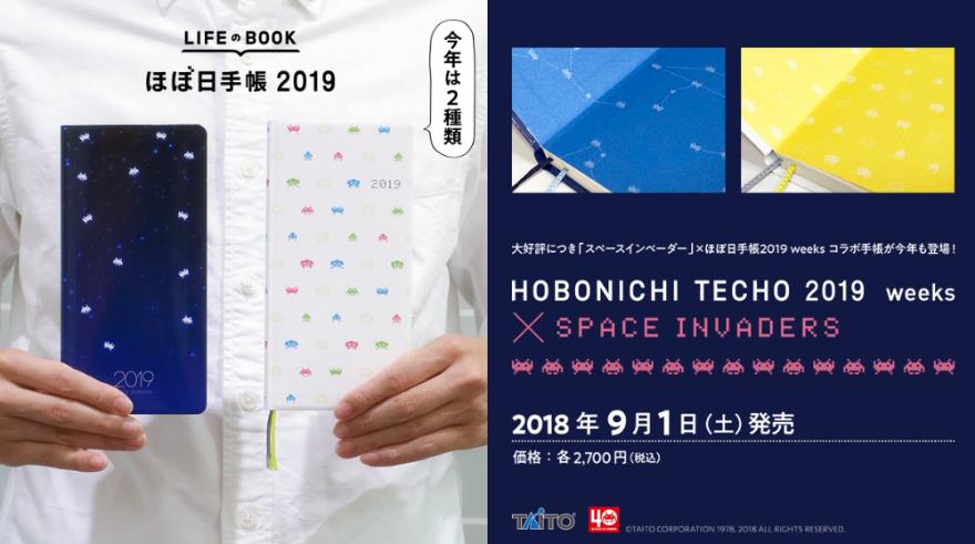 「スペースインベーダー」デザインの「ほぼ日手帳 2019 weeks」2種類が発売