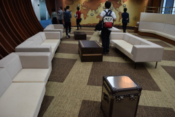 “GRAND HARBOR”と名付けられた本社オフィスのイメージコンセプトは“Journey(セガサミーの飽くなき旅)”。エントランスには世界地図や,イカリのモニュメント,トランクの形をしたテーブルなどが飾られており,内装が客船をイメージしたもので統一されていた。