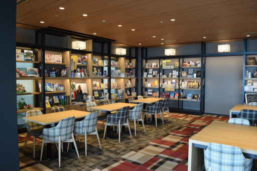 また,食事スペースの奥には,ビデオゲームやビリヤード,ダーツなどを楽しめるバー(18:00以降はアルコールも提供している)や,さまざまなジャンルの本を取り揃えたライブラリーも。