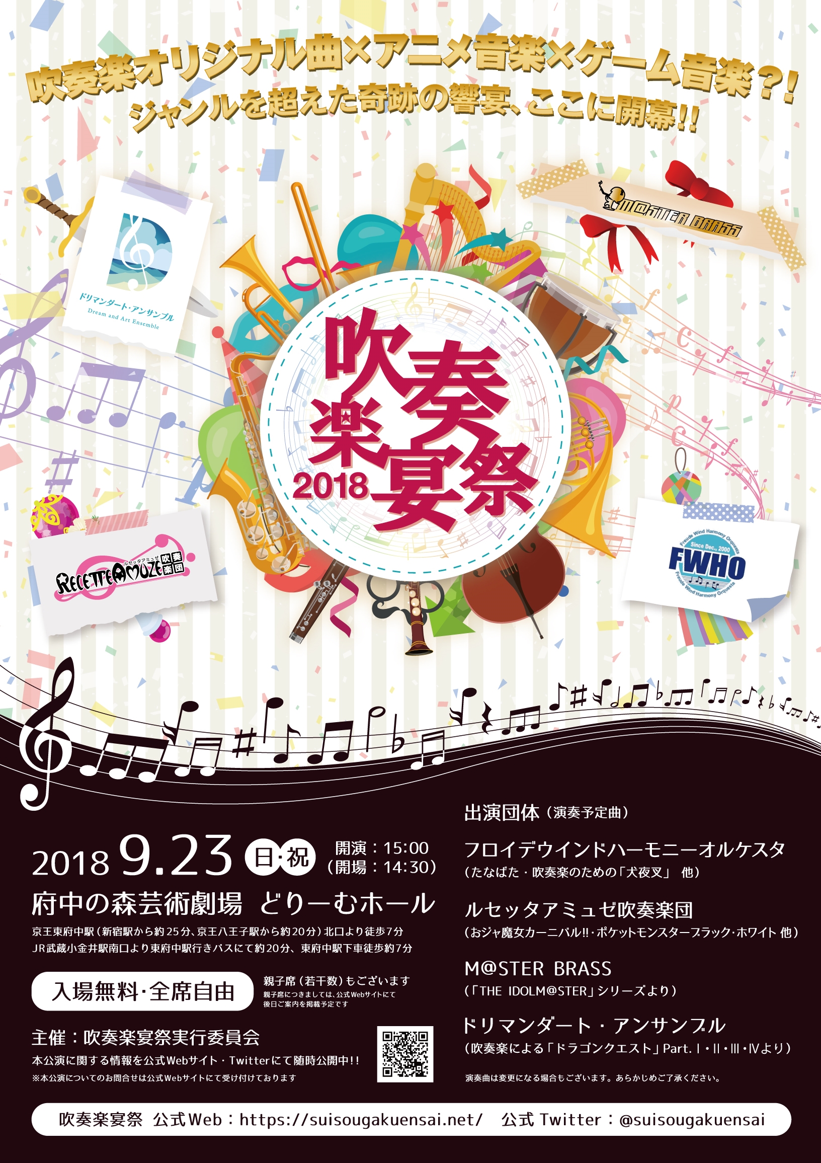 「吹奏楽宴祭2018」が9月23日に開催。「ドラゴンクエスト」や「THE IDOLM@STER」などの楽曲を演奏
