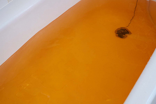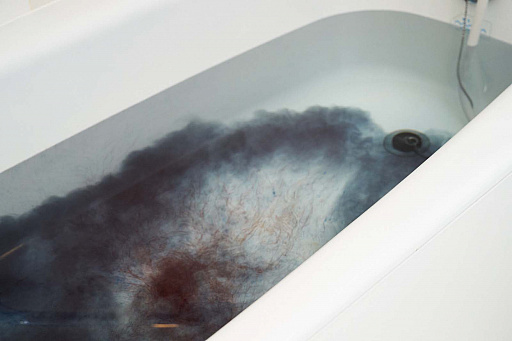 さっそく入浴してみよう。ビジュアルショックはイヤというほど分かったので,次はボディショックの番だ。だが,手を浴槽に入れてみても肌に刺激を感じることはなく,このあたりは成分表からも分かる。
