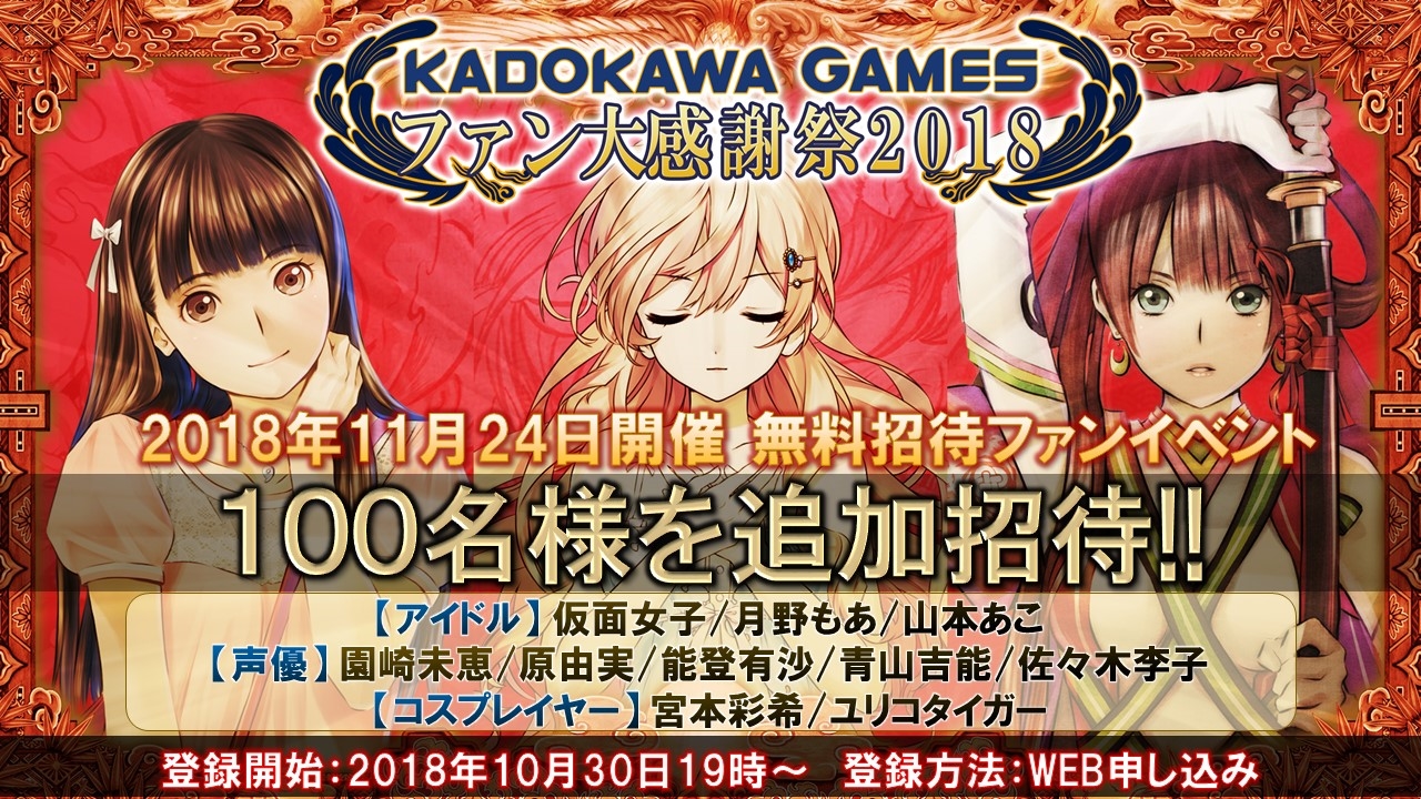 「角川ゲームス ファン大感謝祭 2018」,100名分の招待枠が追加に