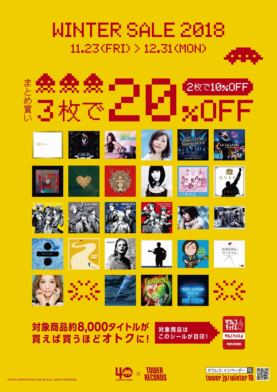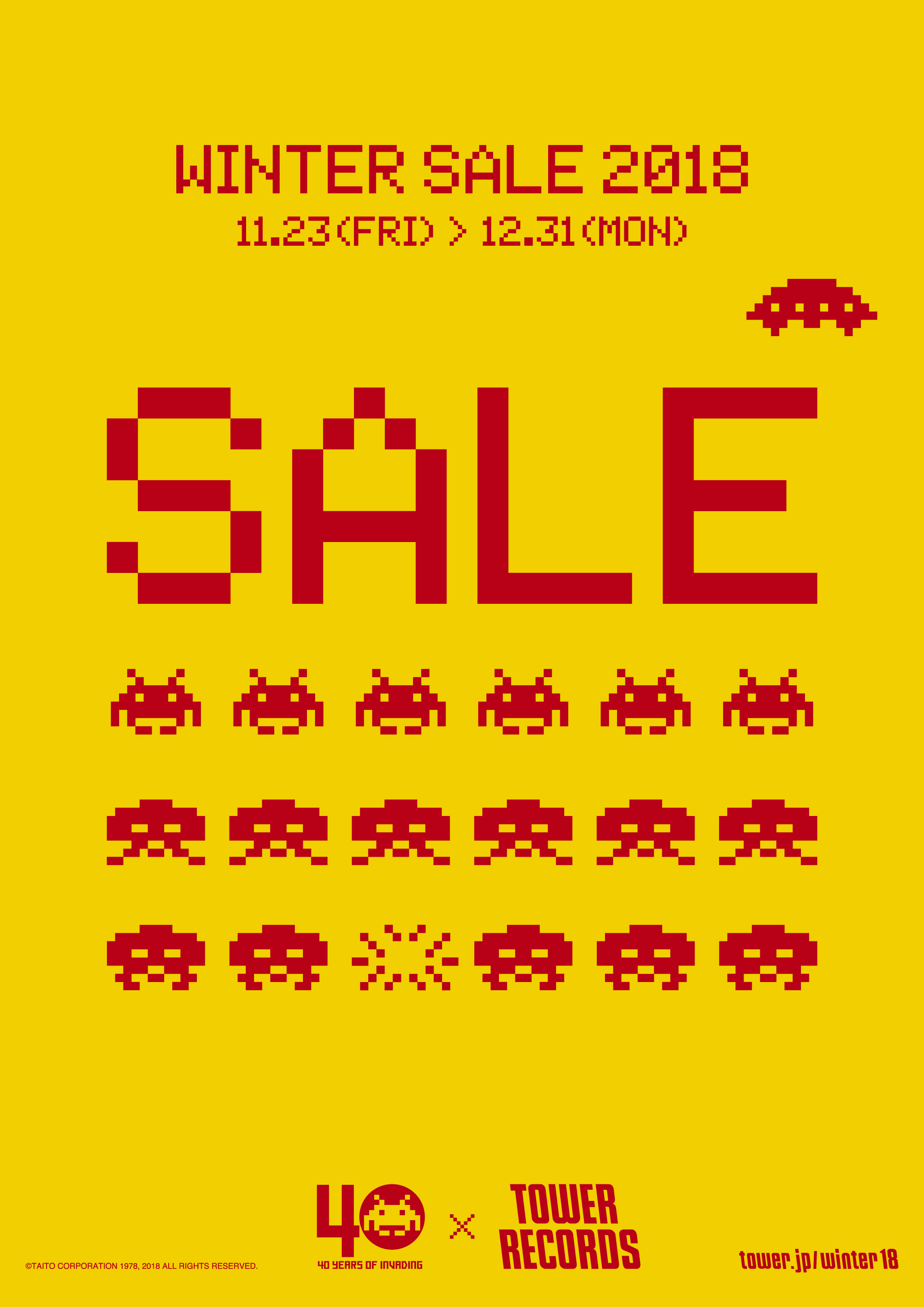 タワーレコードが,「スペースインベーダー」とコラボした“WINTER SALE 2018”を11月23日から開催
