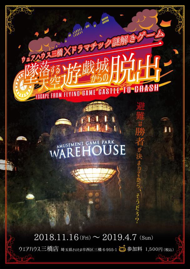 埼玉・ウェアハウス三橋店で「墜落する天空遊戯城からの脱出」が11月16日から開催