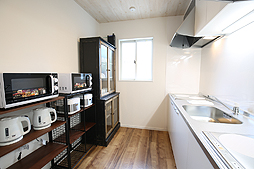 といった点が挙がっている。参考写真を見ると,キッチンには電子レンジや電気ケトルが複数台あったり,洗面所には洗面台や洗濯機,掃除機などが,それぞれ複数用意されていたりと,当該物件が最初から“シェア”を前提に用意された施設であることが分かる。