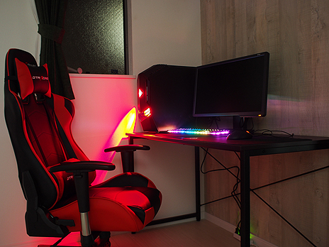 - ゲーマー向けのPCやディスプレイ,デスク,チェアを完備