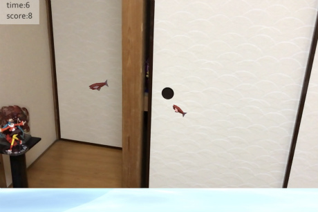 そんな田中さんが1か月間,Unityコースに通って完成させた自主制作ゲームが「Get Fish Battle」だ。AR技術によって現実世界に現れた魚を捕まえる対戦ゲームである。