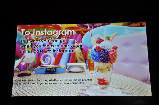 アイスクリームを消費するにあたり,最も一般的な消費の仕方は「食べる」(動詞)ことだ。けれどもし,ここで「インスタグラム」(動詞的用法)であればアイスクリームはどのような実装になり得るだろうか?