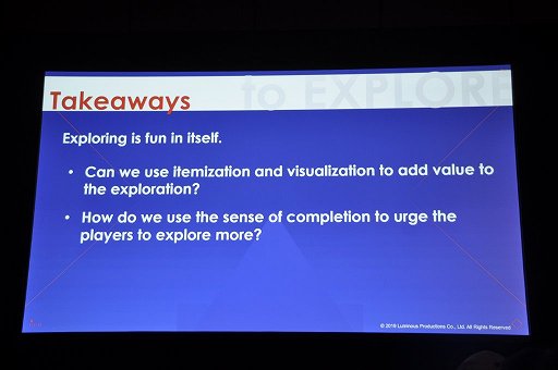またこのようにして探検の進捗を定量化することにより,探検を続けるプレイヤーには途中から「コンプリートのための探検」という新しい目標も設定される。