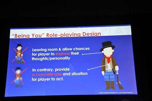 1つは,プレイヤー自身の代理人となる存在を作り上げ,そのキャラクターを通じてロールプレイする方向性。もう1つは,ゲームが提供する特定のキャラクターに感情移入しつつ,ロールプレイするという方向性だ。この2つの方向性は明確に異なるため,「どちらにするか」はハッキリと決めておく必要がある。