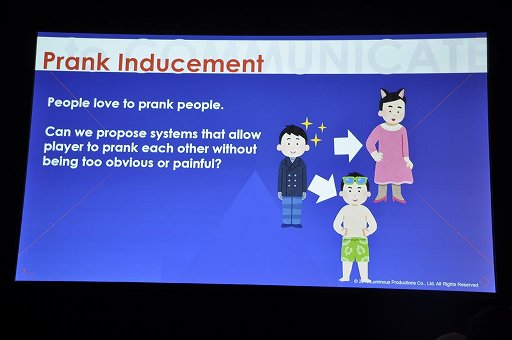 一方で人間のコミュニケーションは言語だけで行われるものではない。「誰かを助けたい」「いたずらしたい」といった本能的な(かつ非言語的な)欲求をうまく刺激すれば,言語依存しない(そしてゲームに実装しやすい)コミュニケーションを喚起できるとPrasertvithyakarn氏は指摘した。