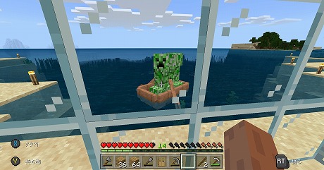 筆者の場合,まず,ガラスで窓を作り,360度,どこからクリーパーが来ても見えるようにした。一番ひどいときは,家のドアを開けたら即爆発したことがあったからで,「何かのブロックを隔てている状態では爆発しない」ことに気付いたのだ。