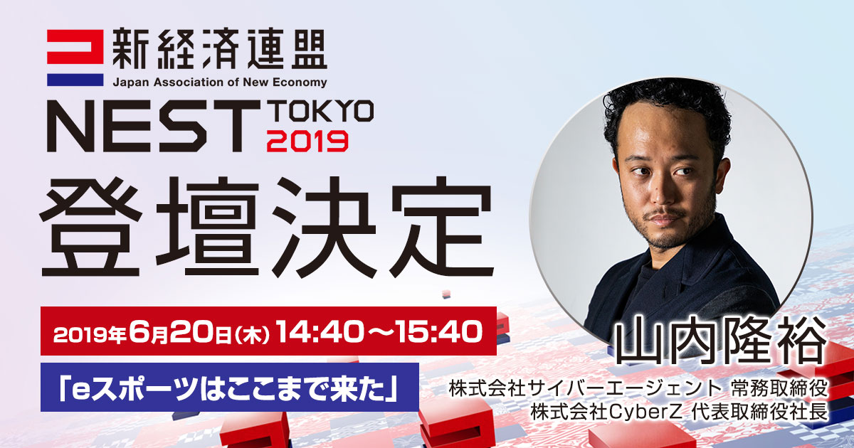 「新経済サミット(NEST TOKYO 2019)」にCyberZ代表取締役社長,山内隆裕氏が登壇