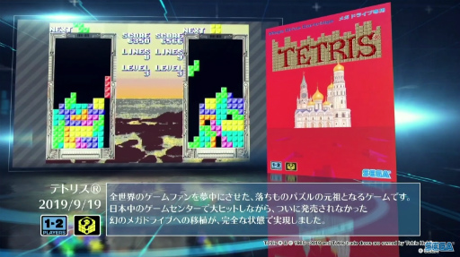 最後の10タイトルの公開のほか、『メガドライブミニ』で初めて遊べる新作として、『ダライアス』と『テトリス』の2タイトルの収録を、追加で公開いたしました。