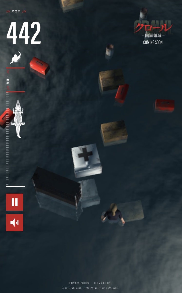 映画「クロール ―凶暴領域―」のブラウザゲーム「ワニから逃げきれ! エンドレス脱出ゲーム」が本日配信