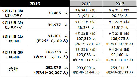 40の国と地域から655の企業や団体が参加した今年のTGS 2019だが,イベントを主催したコンピュータエンターテインメント協会(CESA)と共催の日経BPの発表によれば,会期4日間の総来場者数は26万2076人とのこと。これは過去最高を記録したTGS 2018に比べて,3万6614人の減少となる。