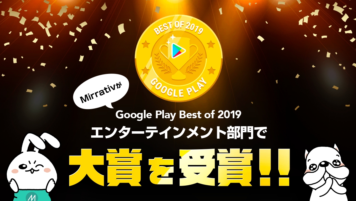ゲーム実況サービス「Mirrativ」,Google Play ベスト オブ 2019のアプリ「エンターテイメント部門」大賞を受賞