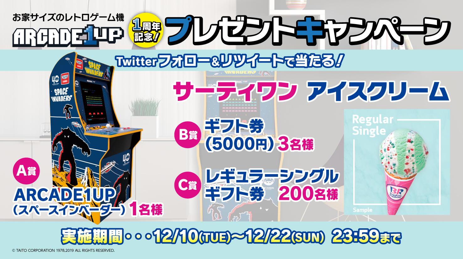 「ARCADE1UP」,発売1周年のTwitterキャンペーン開催。「スペースインベーダー」筐体などが当たる