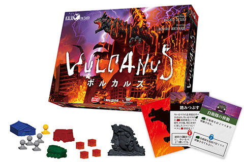仕入れた商品の需要を操作し,より多く稼ぐことが目的のカードゲームです。派手に動くと摘発の手が伸びるので,ほかのプレイヤーとの熱い心理戦が楽しめます。ゲームマーケット2018大阪で発表された「くだサル」をリメイクした作品です。