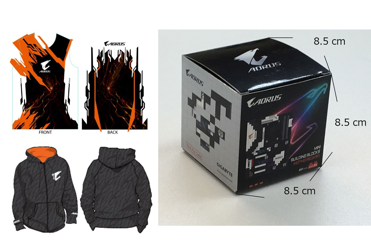 「レインボーシックス シージ」で活躍するAORUSのeスポーツチーム「ワシノコ」のユニフォーム2着(MとLサイズ)と,ウィンドブレーカー(Mサイズ),481ピースのミニブロックをセットにしてプレゼント。ミニブロックは中の説明書通りに組み上げるとマザーボードの形になります。