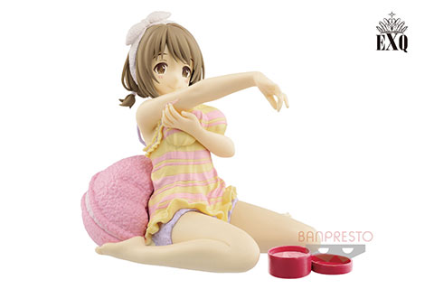 「アイドルマスター シンデレラガールズ」(iOS/Android)のアイドル「三村かな子」がEXQフィギュアで登場。ボディバターを塗りこむオフショットのシーンを再現しており,マカロン型のクッションやボディバターの容器も付属しています。(全高:約12cm )