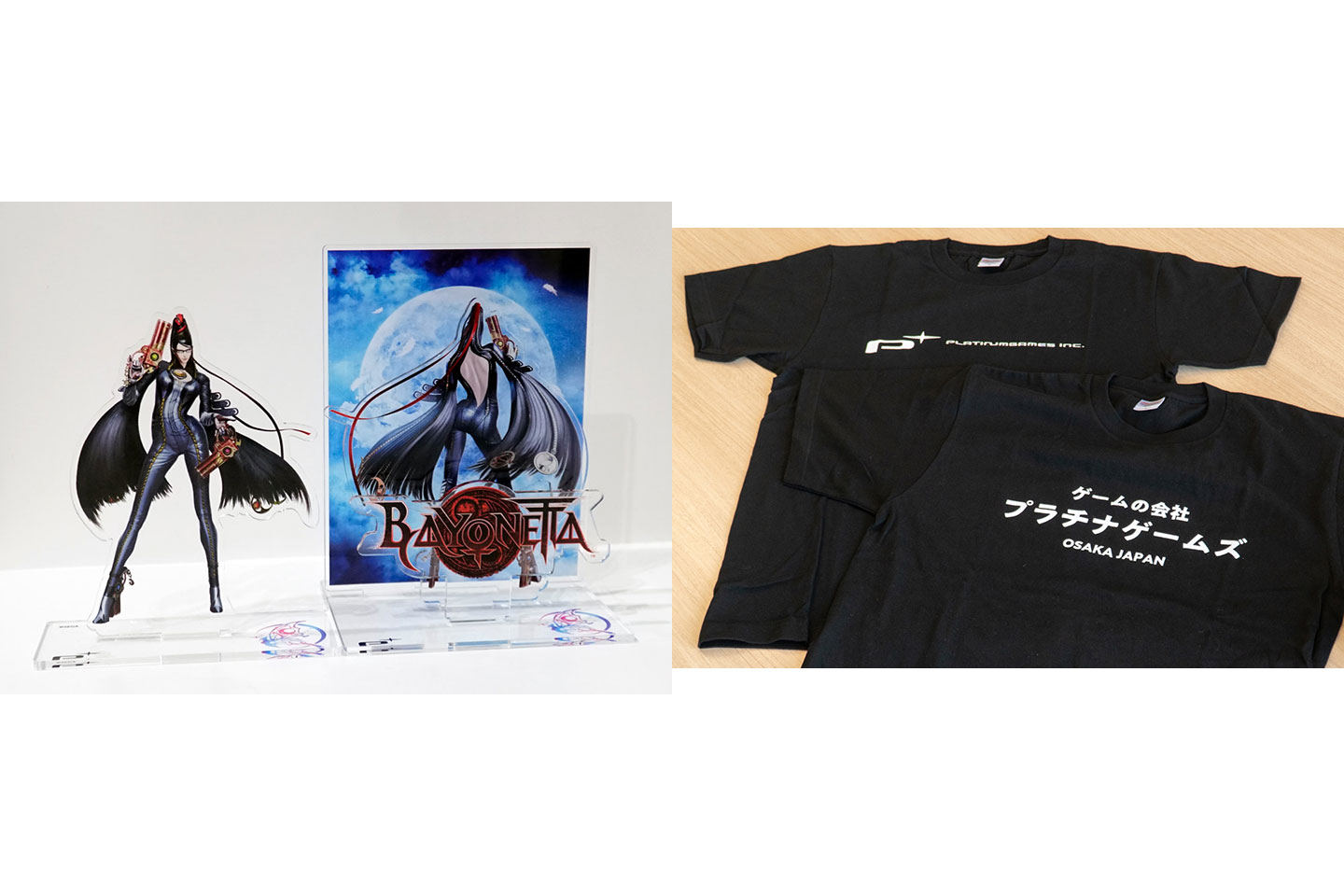 プラチナゲームズが開発したアクションゲーム「ベヨネッタ」から,「ベヨネッタ」のアクリルフィギュアとプラチナゲームズオリジナルTシャツ2種(Mサイズ)をセットでプレゼント。Tシャツは黒地に白の文字がプリントされた2種類を用意しています。
