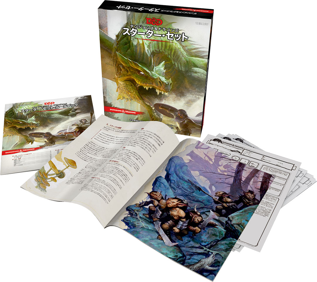 TRPG「ダンジョンズ&ドラゴンズ 第5版」の日本語版です。ダイスやルールブックなど,ゲームに必要な道具が一式揃った,初心者でも楽しめるスターター・セットをお届けします(関連記事)。