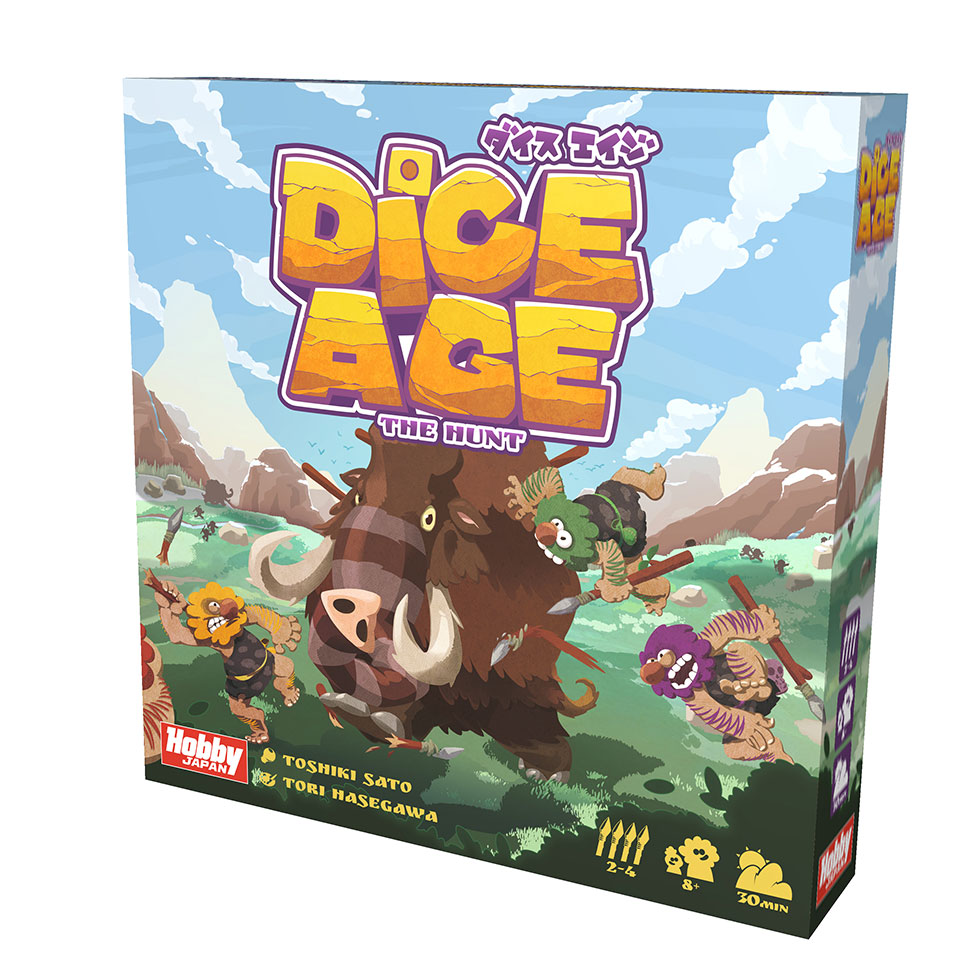 原始人部族の頭領となり,狩った獲物の数を競う,2〜4人用ボードゲームです。ダイスを部族の戦士に見立てて出た目の狩場へと向かわせ,最も多くの戦士を送り込んだプレイヤーが獲物を獲得できます(関連記事)。