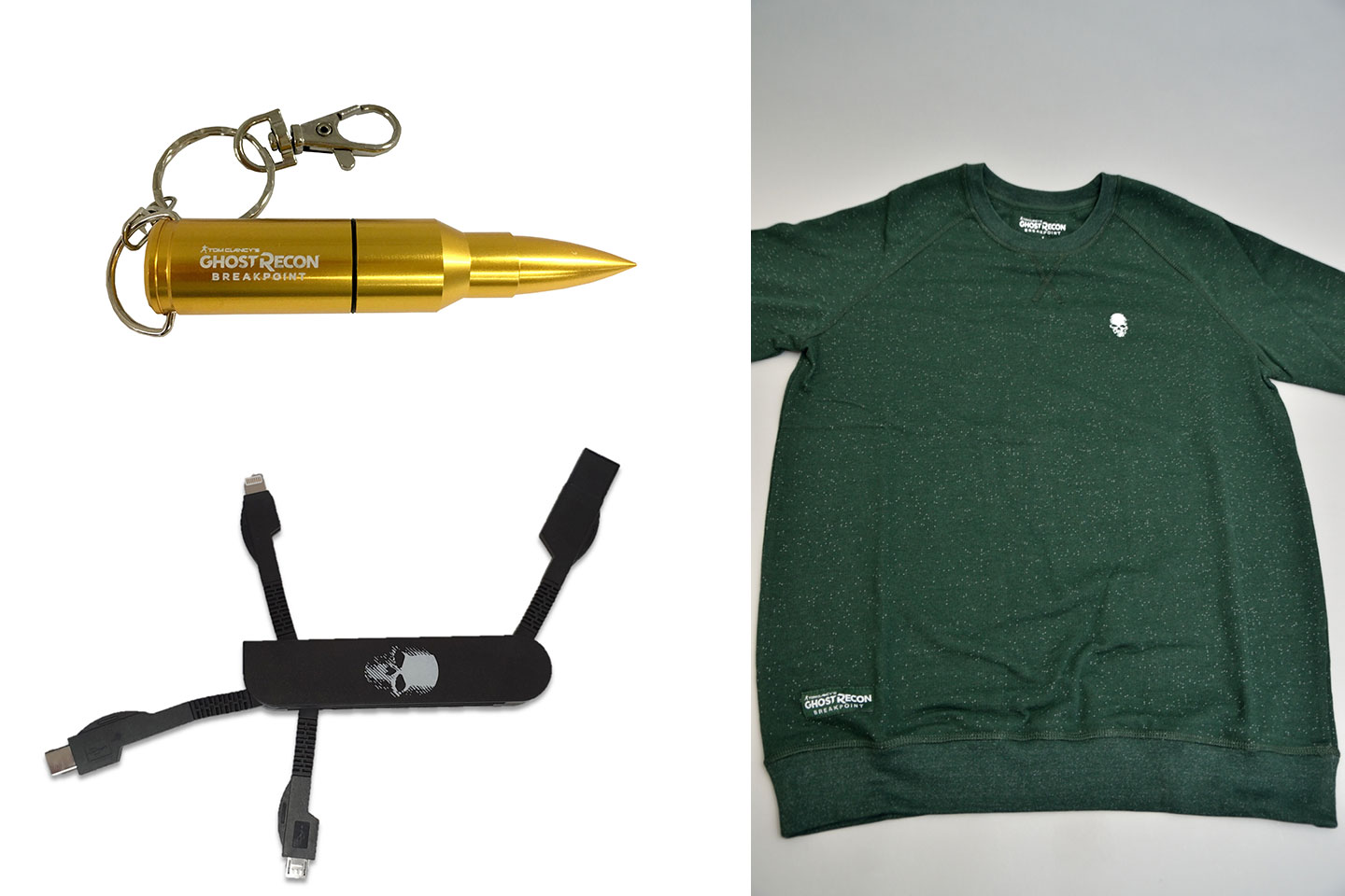 アメリカ軍の精鋭特殊部隊「ゴースト」の一員となって,広大なアウロア群島で過酷なサバイバルに挑むオープンワールドミリタリーシューター「ゴーストリコン ブレイクポイント」(PC/PS4/Xbox One)のグッズです。アーミーナイフ型のマルチUSB(長さ:9.3cm ※収納時/ポート:ForiP5/6/7,Micro,Type-C)と弾丸型USBメモリ3.0(長さ:約9cm),トレーナー(XLサイズ)の3点をセットにして2名様にプレゼント。