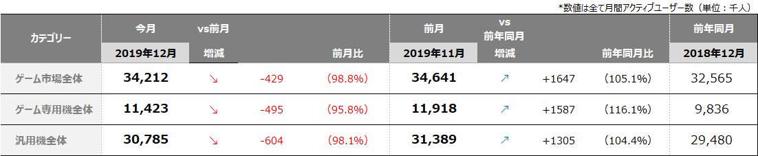 ゲームエイジ総研が2019年のゲームユーザー規模の推移を発表。同年12月のユーザー規模は3421.2万人に