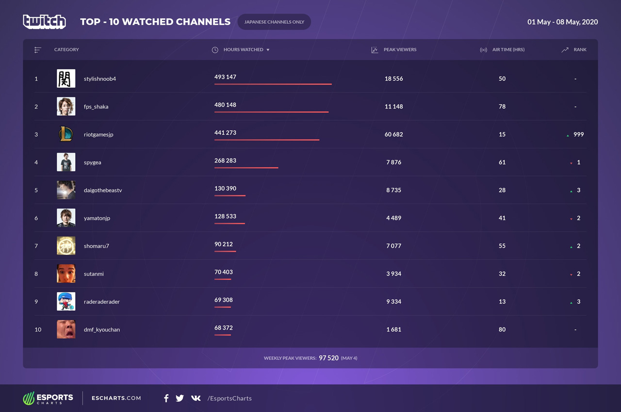 eスポーツ配信のデータ分析を行う「Esports Charts」の日本・韓国向けサービスが発表