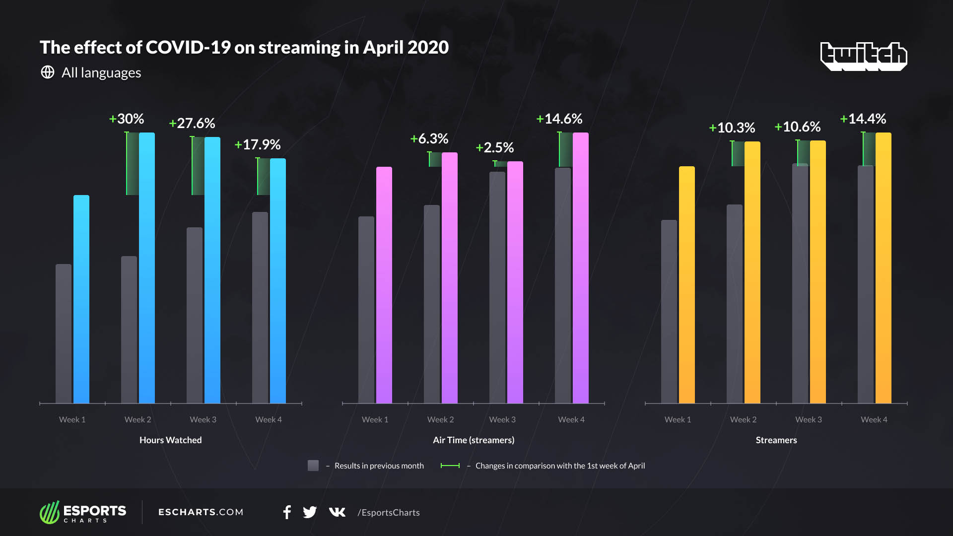 外出規制施策の影響でeスポーツ配信の総視聴数や時間が大幅に増加。データ分析サイト「ESPORTS CHARTS」が4月の最新レポートを公開